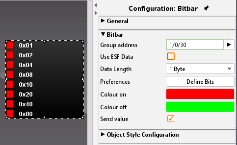 The bit bar is a display element for displaying the values of a status byte (bit mask). A byte consists of 8 bits, all of which can have the status 0 or 1. In the status byte, each of these bits provides information about a specific status.