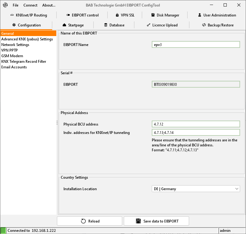 EIBPORT HOOC Gateway Manager | Admin | eibPort |