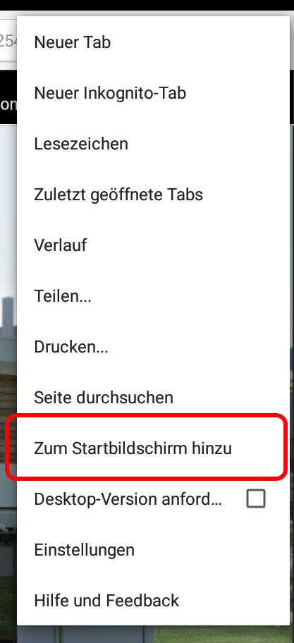 On Android devices, you can link the opening of a CONTROL L visualisation project directly on the start screen of your system with the help of a symbol using the “Add to start screen” function in the Chrome browser.