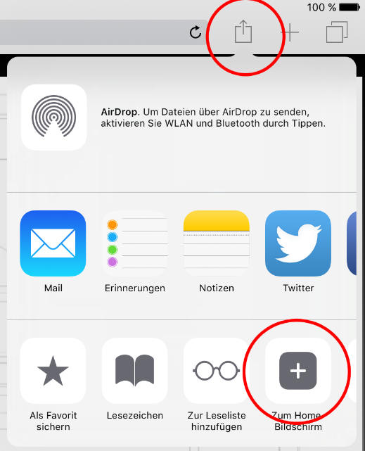 iOS devices: "Add to home screen" function