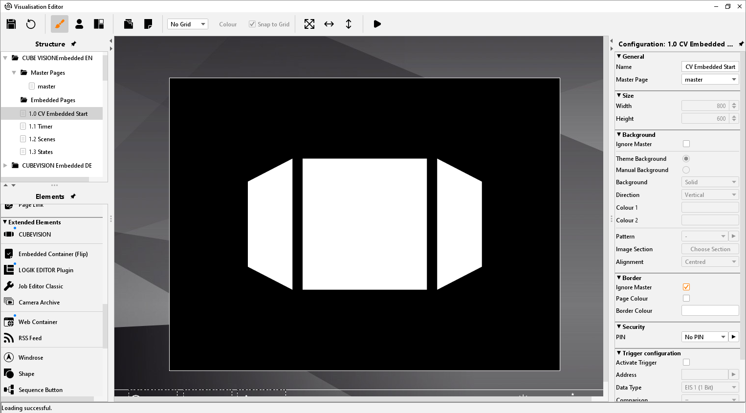 This element is used to integrate CUBEVISION into the free CONTROL L visualisation. (Also see chapter "CUBEVISION"). For a detailed description of the configuration, please refer to the CUBEVISION documentation which is available on the supplied CD or at www.bab-tec.de.