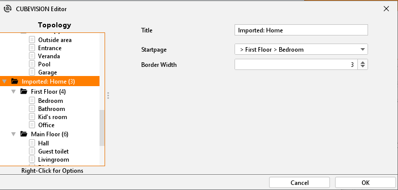 The imported project then appears with the âImported:â addendum in the structure name in the CUBEVISION topology.