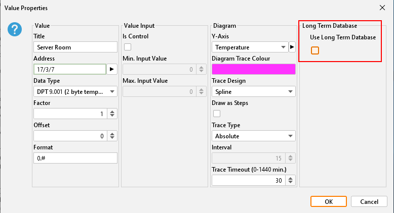Therefore by configuration the visualization element now has an additional function âlong-term recordâ to enable recording. By activation opens a window for the long-term database, as described in present chapter above by in CUBEVISION.
