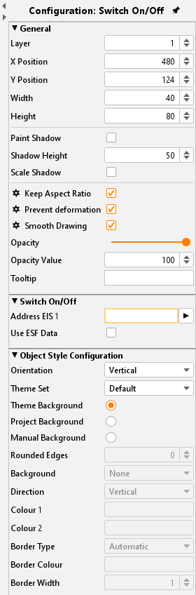 All elements of standard library belong to visualisation elements and all the switches that were created by the COMPONENTBUILDER. These are, however, optional. For placing the elements on visualisation, it will be sufficient to click on these elements. Then they will be placed in the centre of visualisation page, focussed by a frame and on the left-hand side a corresponding element parameter will be displayed.