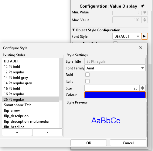 Some elements include fonts. In this case, you can alter additionally font styles in a ConfigTool. It is possible to apply various patterns of style, which you can use again and again.