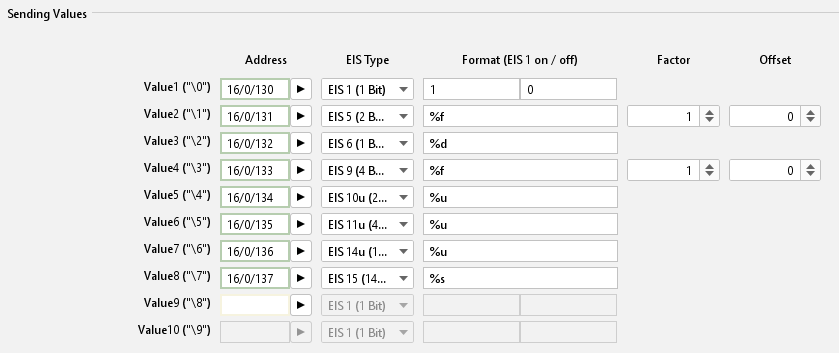 EIS 5 and EIS 9: Factor and offset can be adjusted. Value will be multiplied by “factor” and added by “offset”.