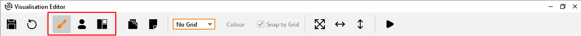 The security settings are opened using the corresponding button in the menu bar of the Visualisation Editor. You can switch between “Visualisation”, “Security settings” and “Layout plan” here. The button for the selected view is always marked.