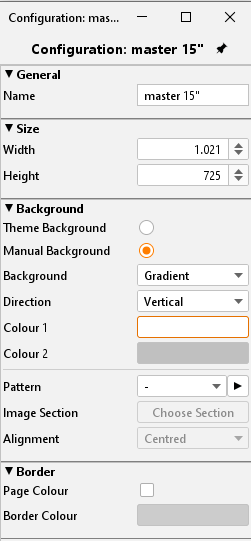 “Gradient”, “Background Colour” and “No Background”.Alignment: If “Gradient” is selected as background it can be defined here if the direction is vertically or horizontally. If another kind of background is selected this array is greyed out