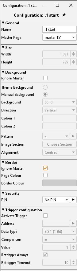 Activate trigger: The regarding page will be displayed on screen by releasing a telegram. Reversal of a page can only take place within one project.