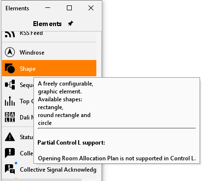 In what form visualisation elements and global parameters also are effective for CONTROL L, we can find out quickly and simply by means of tooltips. Visualisation elements will get one optical marking (a blue bar). CONTROL L support of the elements will be constantly developed and alters from firmware to firmware.