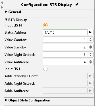 Beside general element parameters, some specific parameters of elements exist. These parameters define, which data type and which address RTR-display will use.