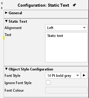 Static text, object style configuration