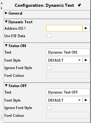 The basic settings are equal to the static text. Additionally, it is possible to define a text for status ON and one for status OFF. For each status a different style can be defined. The input object determines the status.