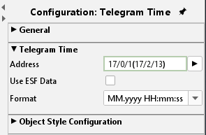 The element shows the last time stamp of the telegram(s) an address object has received. Fach telegram received or leaving the EIBPORT the last time stamp is buffered in the internal address table. The time stamp element scans the address table and returns the result.