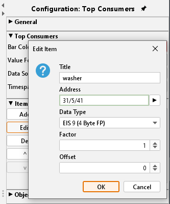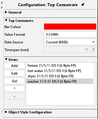 Beside general element parameters, some specific parameters of elements exist. These parameters define which unit the top consumer will display and how many consumers will be reflected.