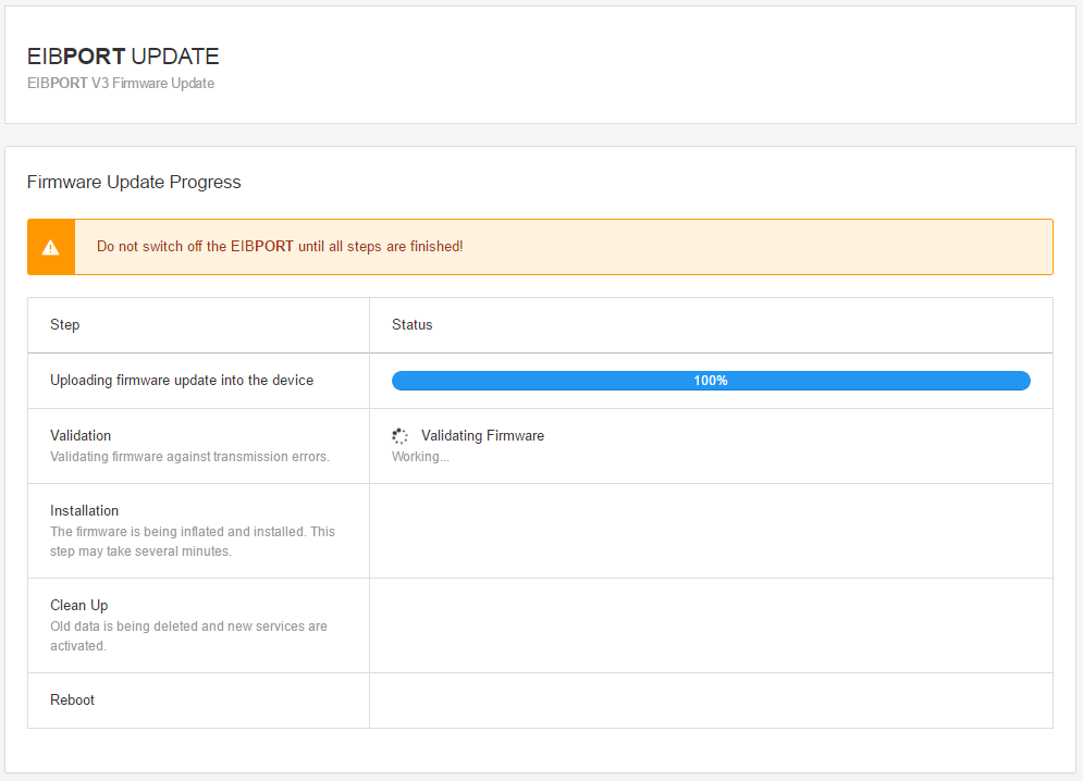 Note: After the firmware update of the EIBPORT please delete the browser cache of your web browser.