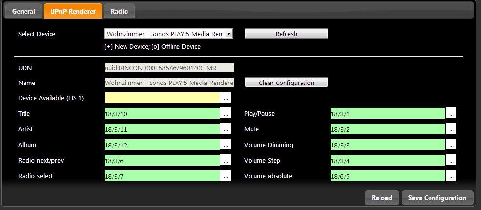 Group addresses assigned by the UPnP devices can be controlled via KNX.