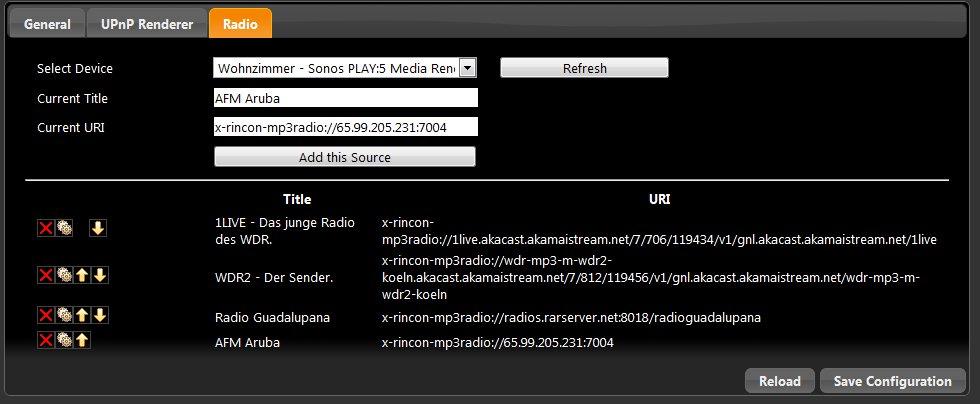 In this window, transmitters can be added, assigned to a specific telegram value and managed. The transmitters were previously searched for and started via the UPnP device.