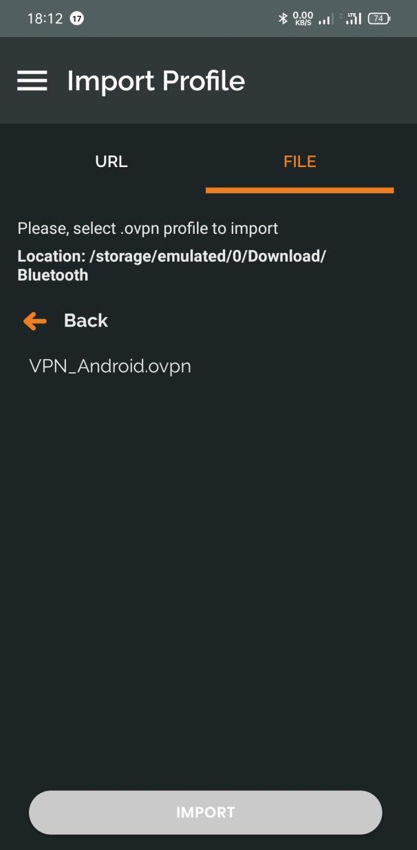 Import your configuration file (e.g. VPN_Android.ovpn)