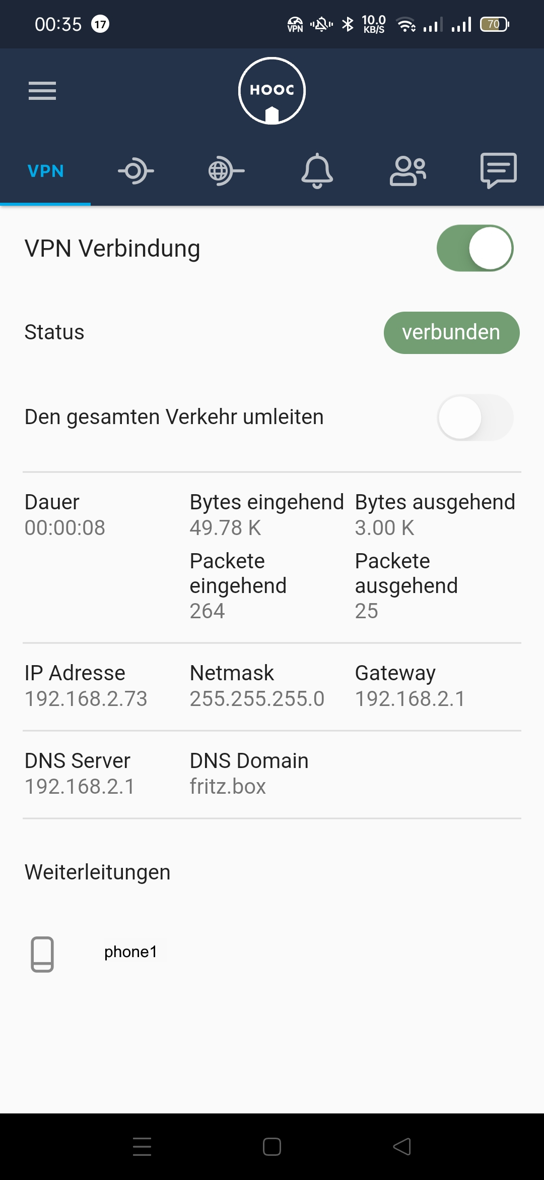 You can also specify here whether only the connection to the system uses the VPN or all data traffic on your mobile device.