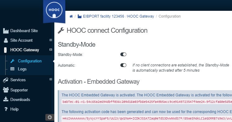 For the HOOC Gateway, a standby mode can be activated. This allows you to reduce traffic.