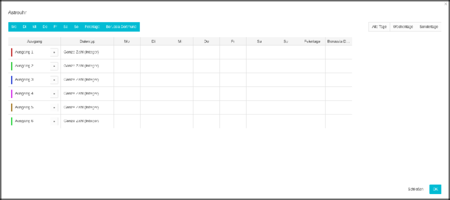 Select the weekdays on which the Astrotimer should be switching. The checkboxes