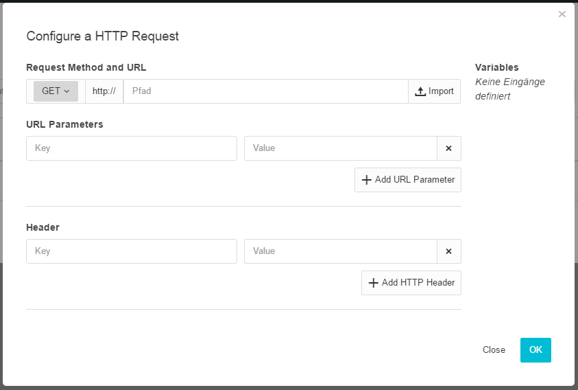 Please set the request method before the further configuration. The screen contents change according to the method. The following are possible: